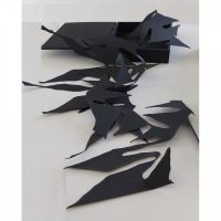 Ruimtelijke installatie, hout, glow-in-the dark, 3 objecten 3.00 x 0.44 x 0.44 m (2021), Kunstmanifestatie Kunststroming 2021 – over grenzen – 10, 11 en 12 september 2021 (samen met 34 andere landelijke kunstenaars)