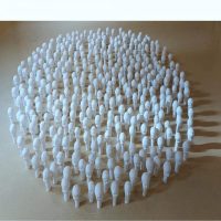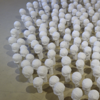 De enkele honderden afgietsels lijken zo op het eerste gezicht een verzameling schelpen. Afhankelijk van de invalshoek van kijken en het licht zie je wel of niet de contouren, worden de gezichtjes zichtbaar (wordt het holle bol). De installatie nodigt uit om verder te kijken en te zien wat alleen met aandacht en geduld zichtbaar wordt.
